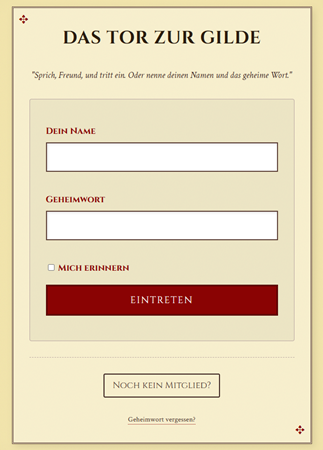 Gebe deinen Heldennamen (dein Name, welchen du auch in der Gilde benutzt), deine Rabenpost-Adresse (E-Mail Adresse) und dein gewünschtes Geheimwort (Passwort) ein und klicke anschließend auf den Roten Button „Schwur leisten (Registrieren).